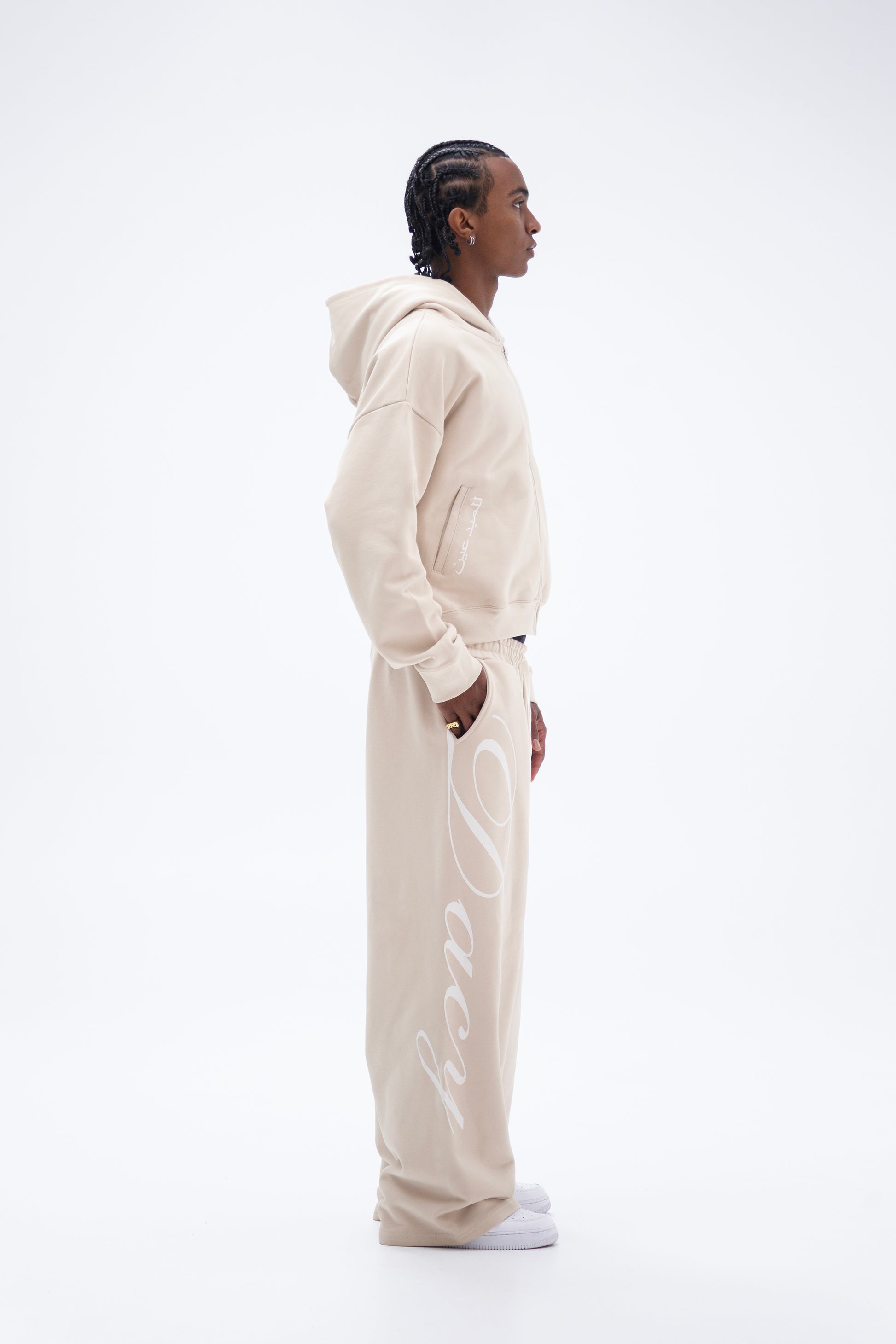 a curated drop of premium essentials designed to elevate your cold-weather wardrobe. This release features our heavyweight 500GSM cream tracksuit set, combining a relaxed wide fit with luxury craftsmanship and signature detailing, including our cursive DACY logo and Arabic ‘For the Creatives’ print.